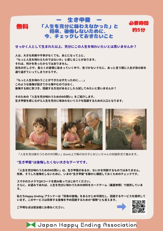 webチェックリスト「人生を充分味わうための9つの問い」 2026.01.22 webチェックリスト「人生を充分味わうための9つの問い」をリリースしましたので、お試し下さい。 ☞ https://4q1aiqetfgw.typeform.com/to/Low131tm シェア 記事一覧へ